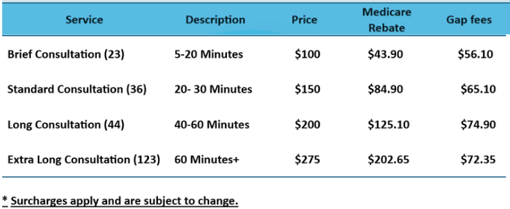 If you are unsure about billing or would like clarification, please speak with our reception team before booking your appointment.